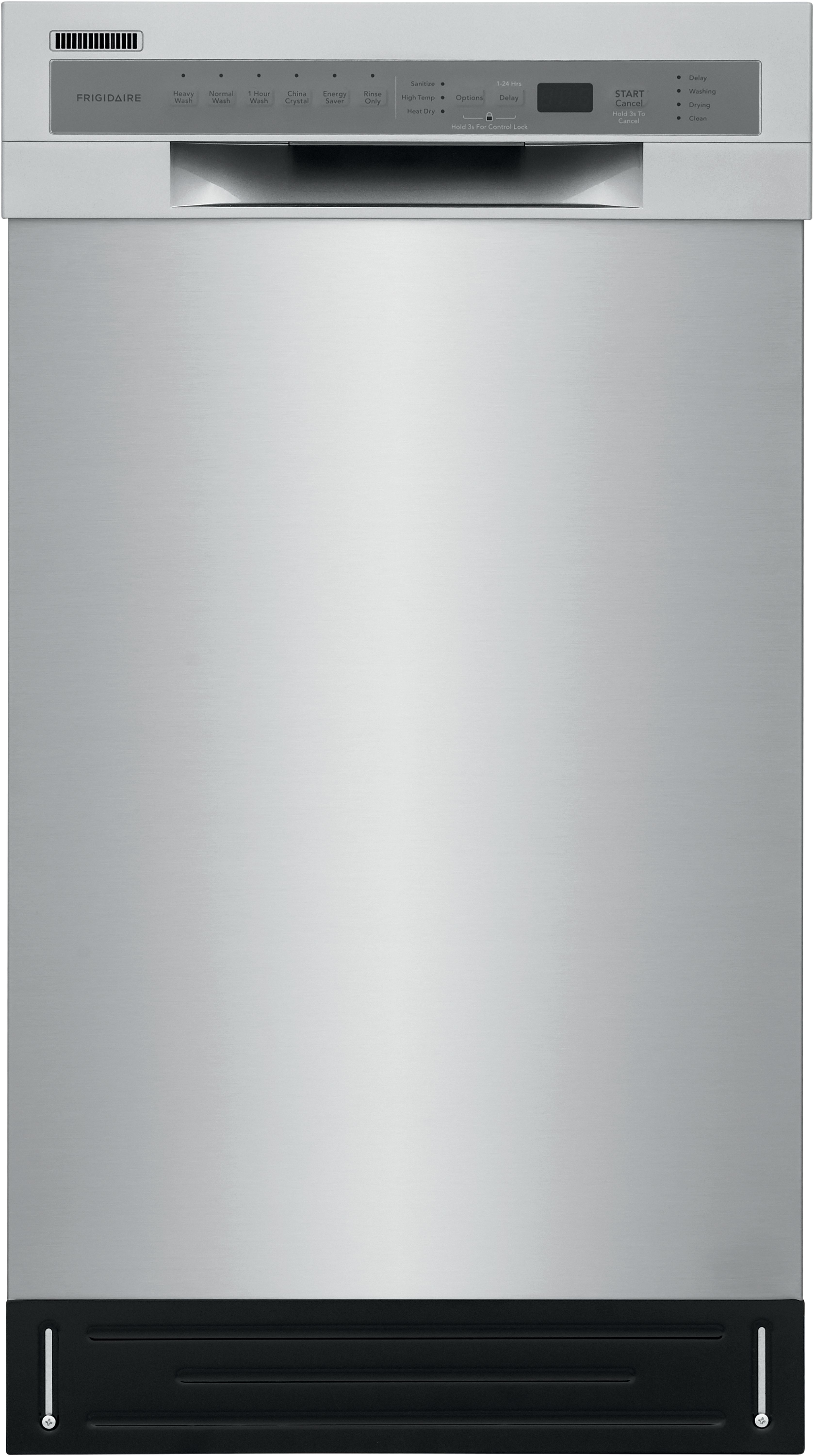 The Frigidaire 18" Built-In Dishwasher is ADA Compliant and features a dual spray arm system that delivers a thorough clean every time. Remove 99.9% of common household bacteria with the Sanitize Cycle, while the space saving design allows you to clean up to 8 place settings in one cycle.Read More