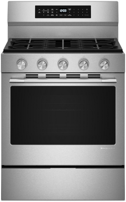 Enjoy a range of possibilities with our most powerful KitchenAid 30-inch Gas Range available. A WiFi-enabled Smart Appliance featuring Convection Cooking Modes that help you get consistent results with optimal temperatures. A spacious 5.0 Cu. Ft. Capacity and optimized oven system design with Rapid Preheat gets your oven to 350°F in under 8 minutes.Read More