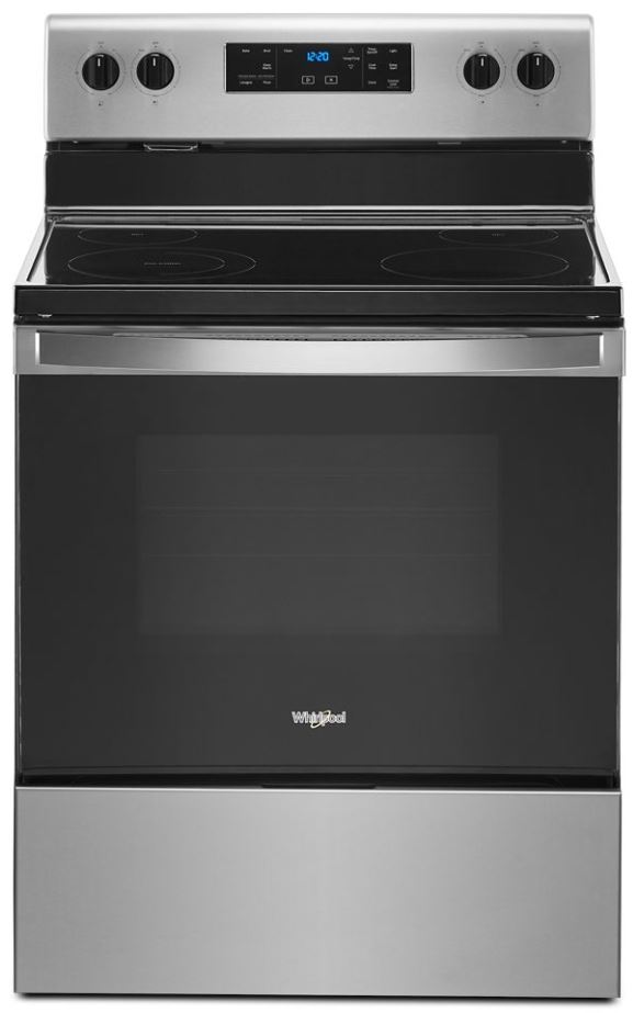 This Whirlpool® electric range with a dual element stove top helps you get dinner to the table. Skip preheating for favorites like pizza with Frozen Bake™ technology. This self cleaning oven also prevents cooked food from getting cold with the Keep Warm setting. Closed door broiling helps keep the kitchen comfortable.Read More